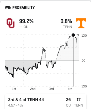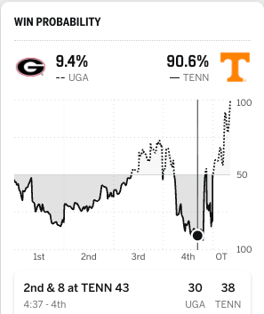 Well, with less than 5 minutes to play against Georgia, the Vols had a 91% chance to win. They lost.