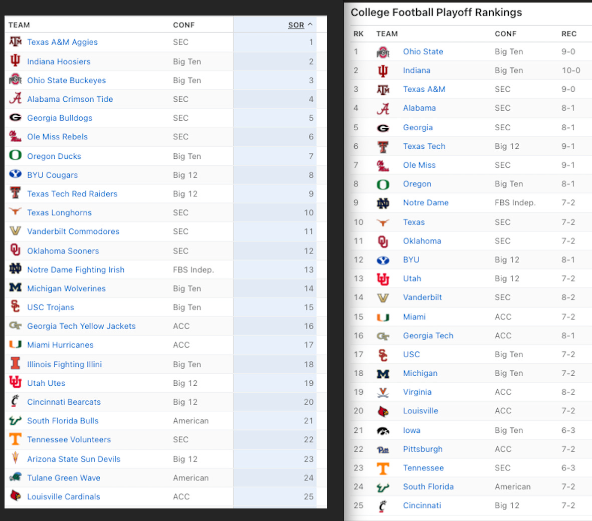 It still uses iffy SoS metrics (seven of the eight hardest schedules played so far belong to SEC teams) and all wins are treated the same, regardless of whether, say, you beat Oklahoma with a healthy John Mateer or an injured one.